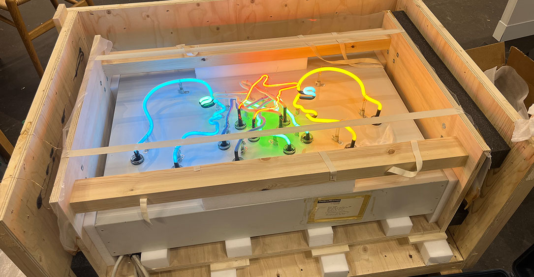 Bruce Nauman, Double Poke In the Eye, Tracey Emin, Love is What You Want. Keith Sonnier, Ballroom Chandelier. Jason Rhoades, Three-Wheel Waggon-Wheel Chandelier.
